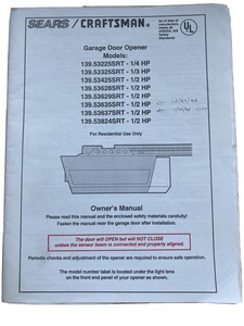 Owners Manual For Craftsman Garage Door Opener Models 13953225srt More Ebay